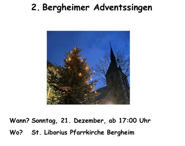 Am kommenden Sonntag ist wieder soweit: nach der erfolgreichen Premiere im letzten Jahr findet nunmehr das 2. Bergheimer Adventssingen statt.
